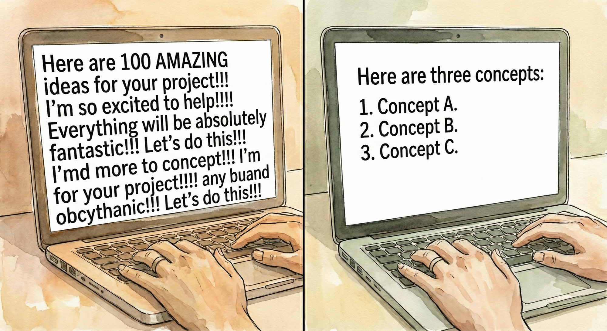 That voice isn't yours. It isn't anyone's, really. It's a statistical average of how helpful sounds, and it talks to a Fortune 500 executive the same way it talks to a freelance photographer in Tulsa. Same cadence. Same tone. Same slightly-too-eager energy that makes you feel like the AI is trying to sell you something even when it's just answering a question about spreadsheets.
